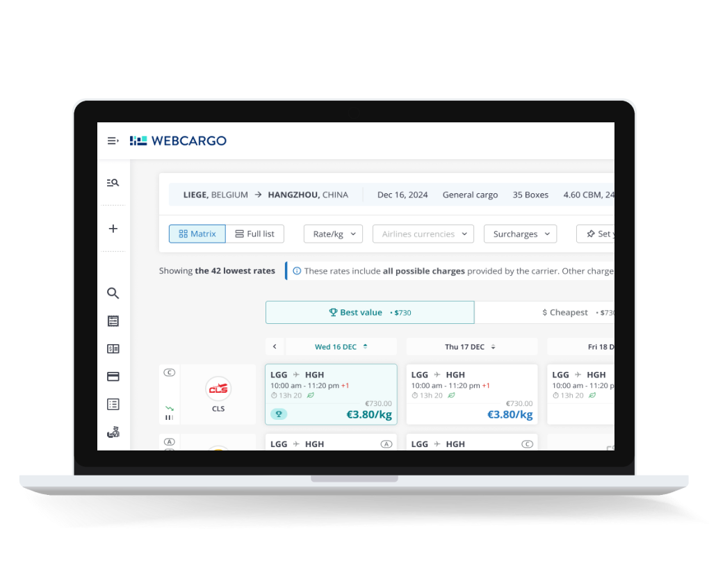 Focus on what matters with best-in-class cargo rate management, pricing, booking, tracking and payments.