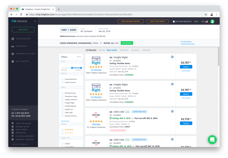 With this move, ocean shippers of all sizes now have direct access to instant pricing, routing, and concrete sailing information in seconds. They also have guaranteed capacity – believe it or not this is the very first time that guaranteed slots and guaranteed prices are offered publicly on major trade lanes. With CMA CGM on Freightos, shippers and carriers finally have a straightforward two way commitment- the carrier guarantees the slot and the shipper promises to pay. This solves two of the industries biggest problems in one stroke – for carriers it solves the cancellation/no-show problem while for shipper it eliminates rolling containers to later sailings.