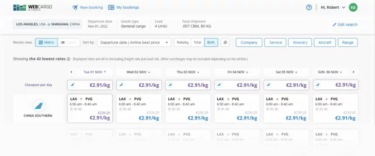 Alongside developing this eBooking capability, China Southern Cargo is also keeping up with the 50% of global capacity available online for instant air cargo rate search on third party platforms like WebCargo. China Southern recognizes the customer demand for the ability to access updated prices based on real-time changes to capacity and schedules (which also provides new pricing and utilization opportunities for carriers).