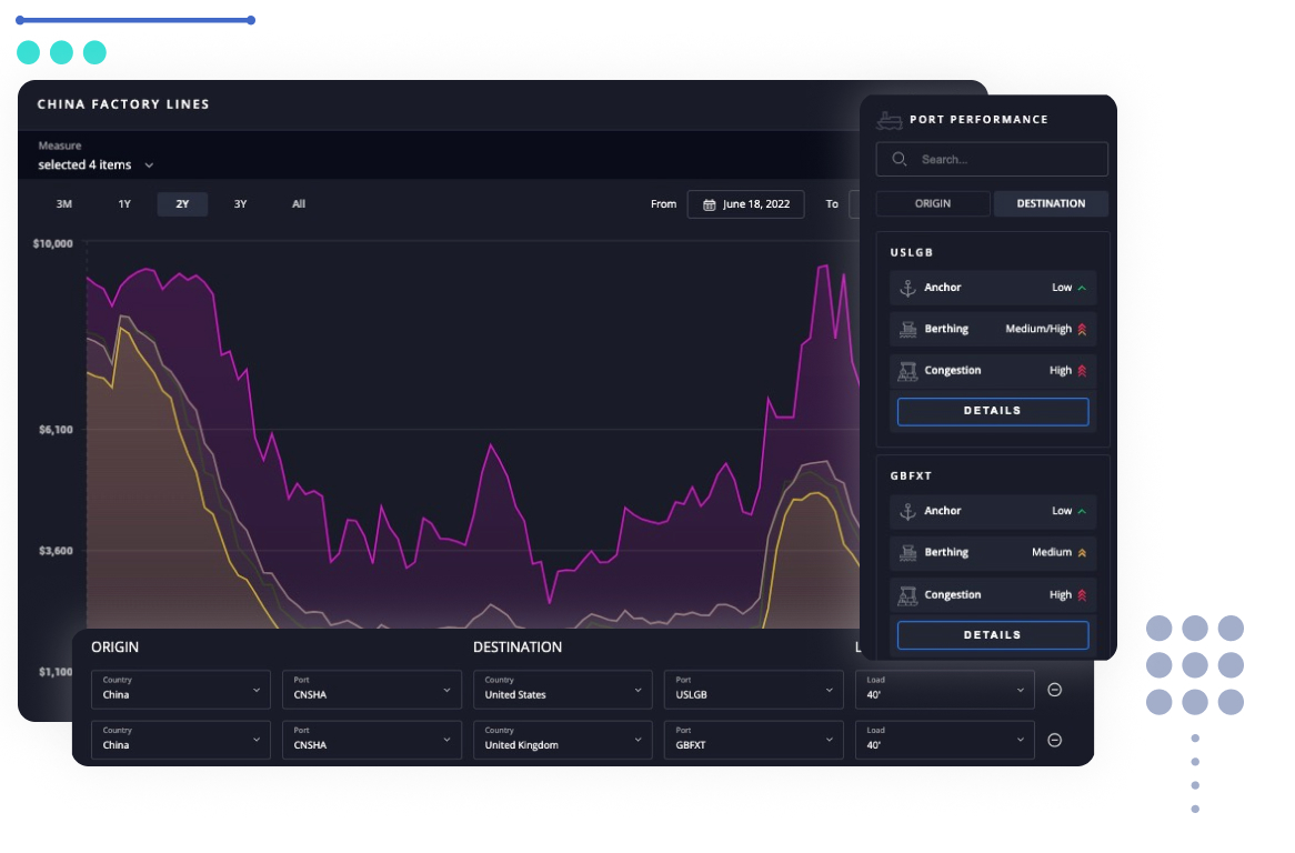 Unlock tailor-made port-port / airport-airport insights that go beyond averages with custom reports. Always fresh data across air and ocean with deep dives across weight breaks and advanced data analytics means better negotiations and improved spot procurement from carriers.