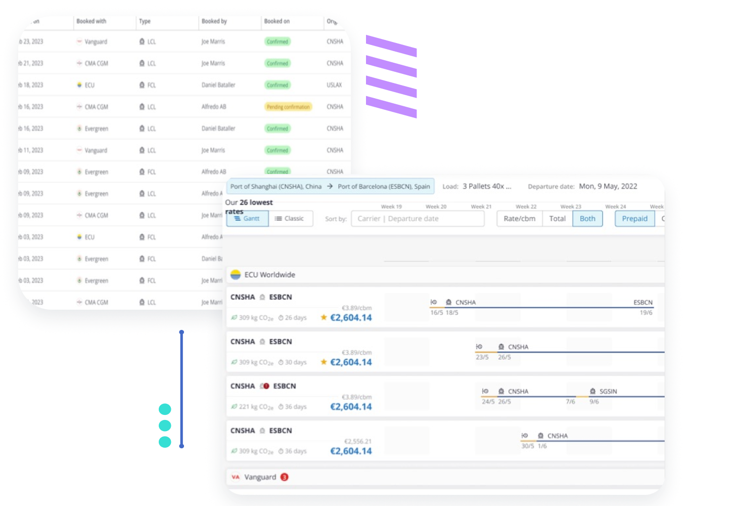 Access spot and contract rates via API from leading ocean liners and LCL consolidators